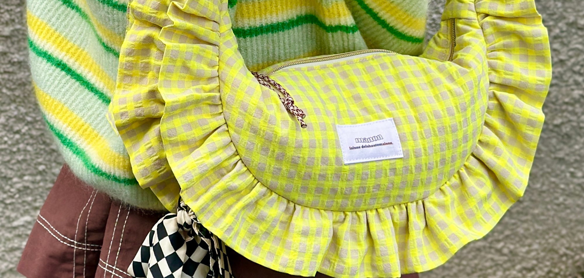 SAC CROISSANT Taille Moyenne et Large - Vichy beige et jaune fluo - Fait main à Reims (France)
