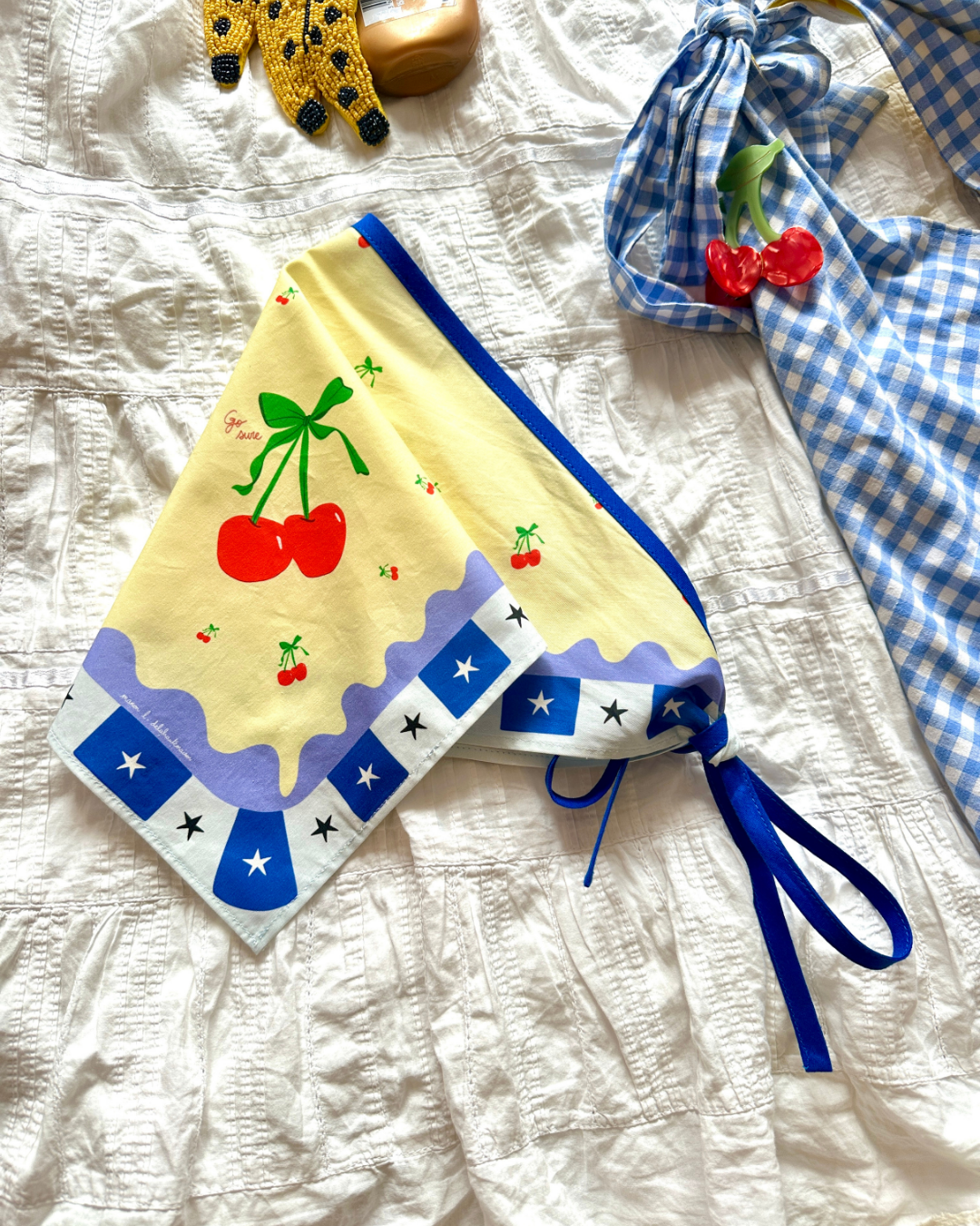 Bandana Cerises bleu / rouge / jaune (motif exclusif Manon L. Delahaute)